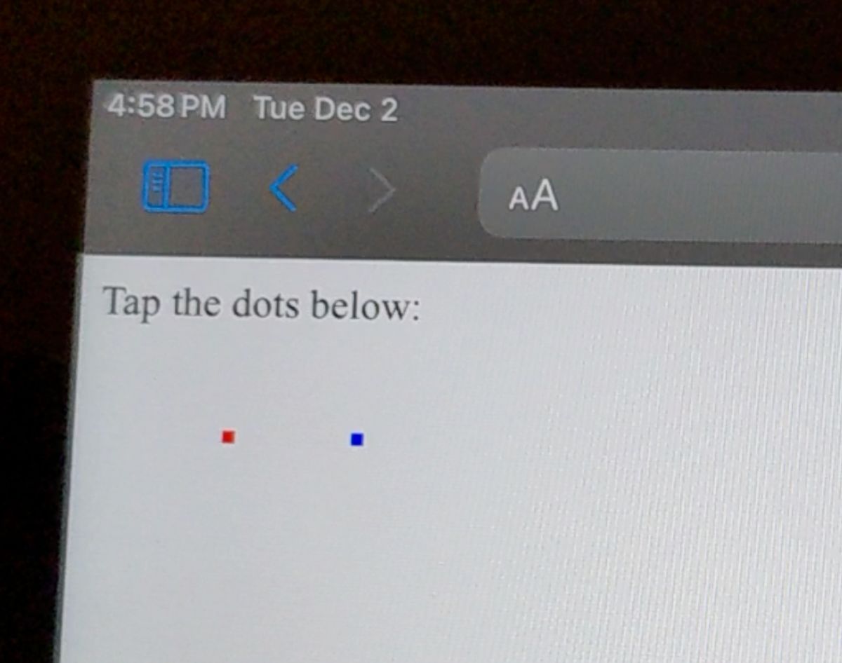 small to tap. I fixed it by creating a large invisible <div> over every dot on the field, to catch touch input on iOS.